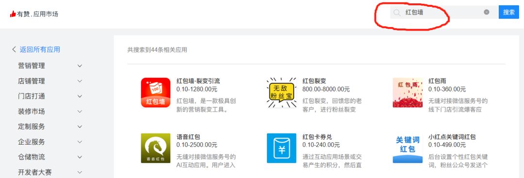 在有赞云应用市场搜索「红包墙」,即可订购打造属于自己的私域流量池,想体验的商家朋友们抓紧去试试吧。